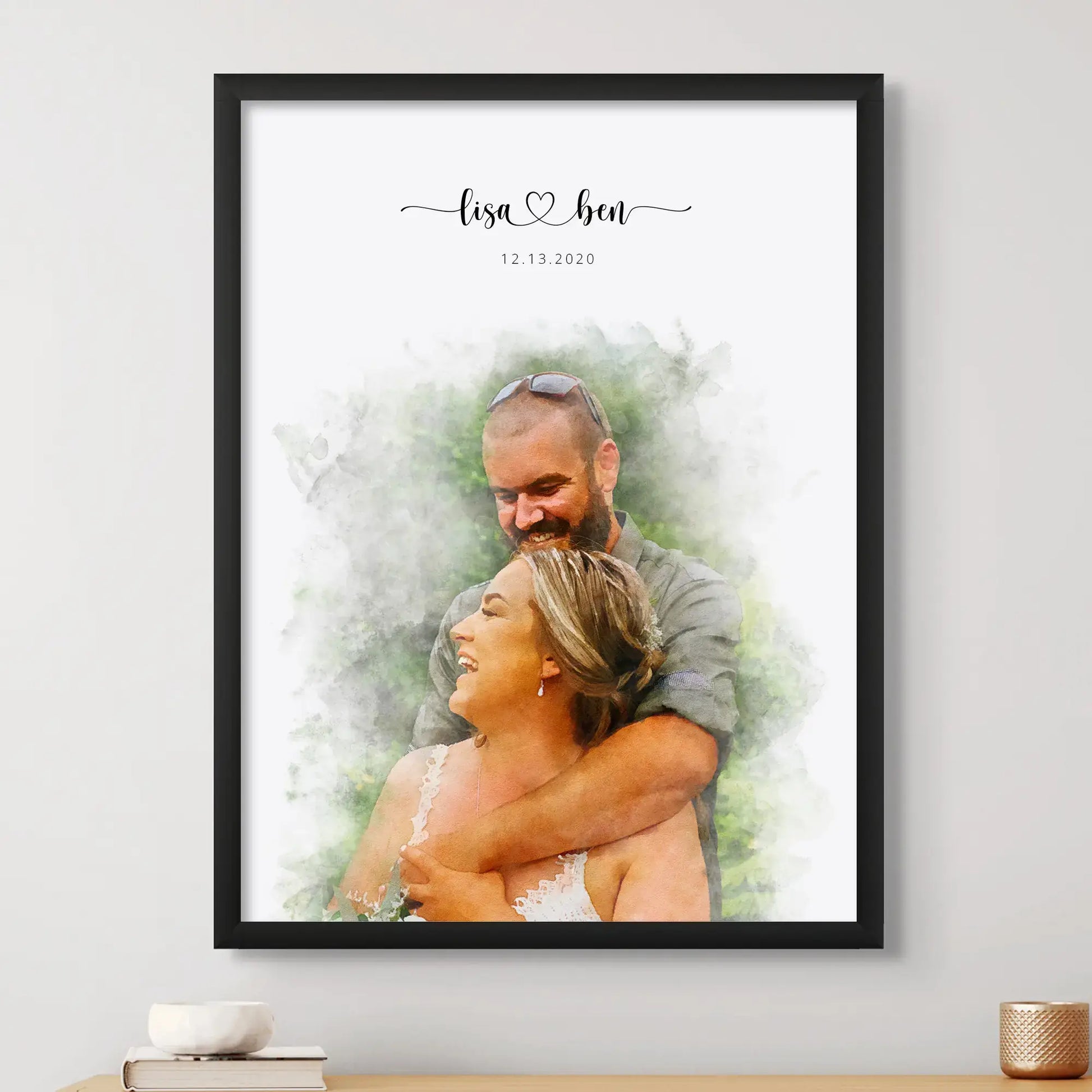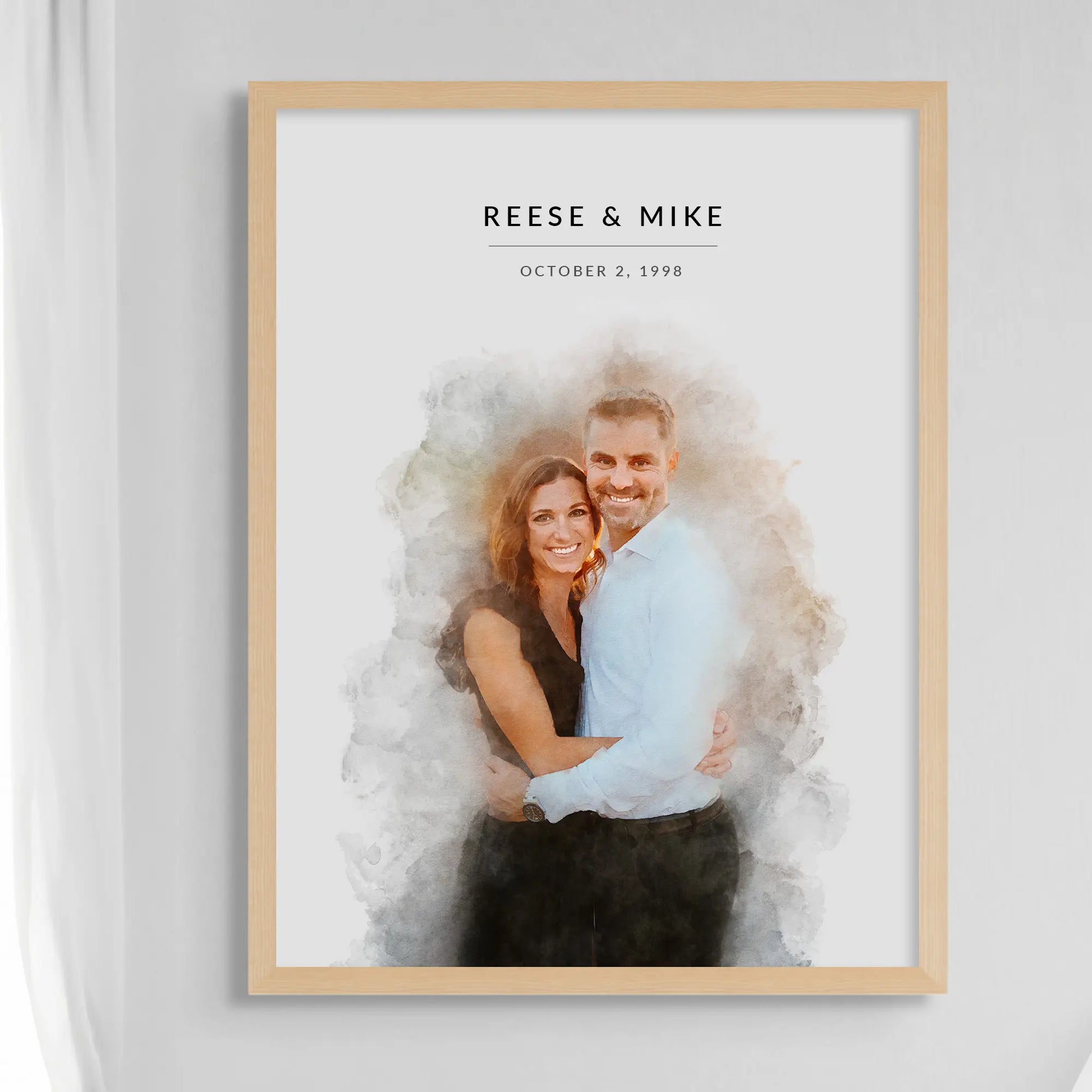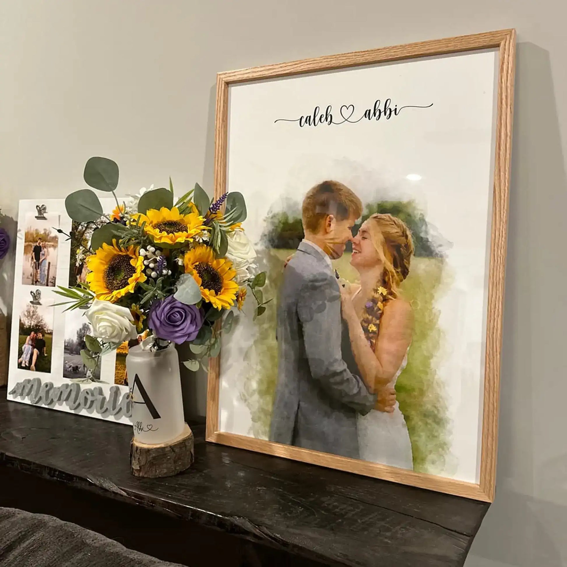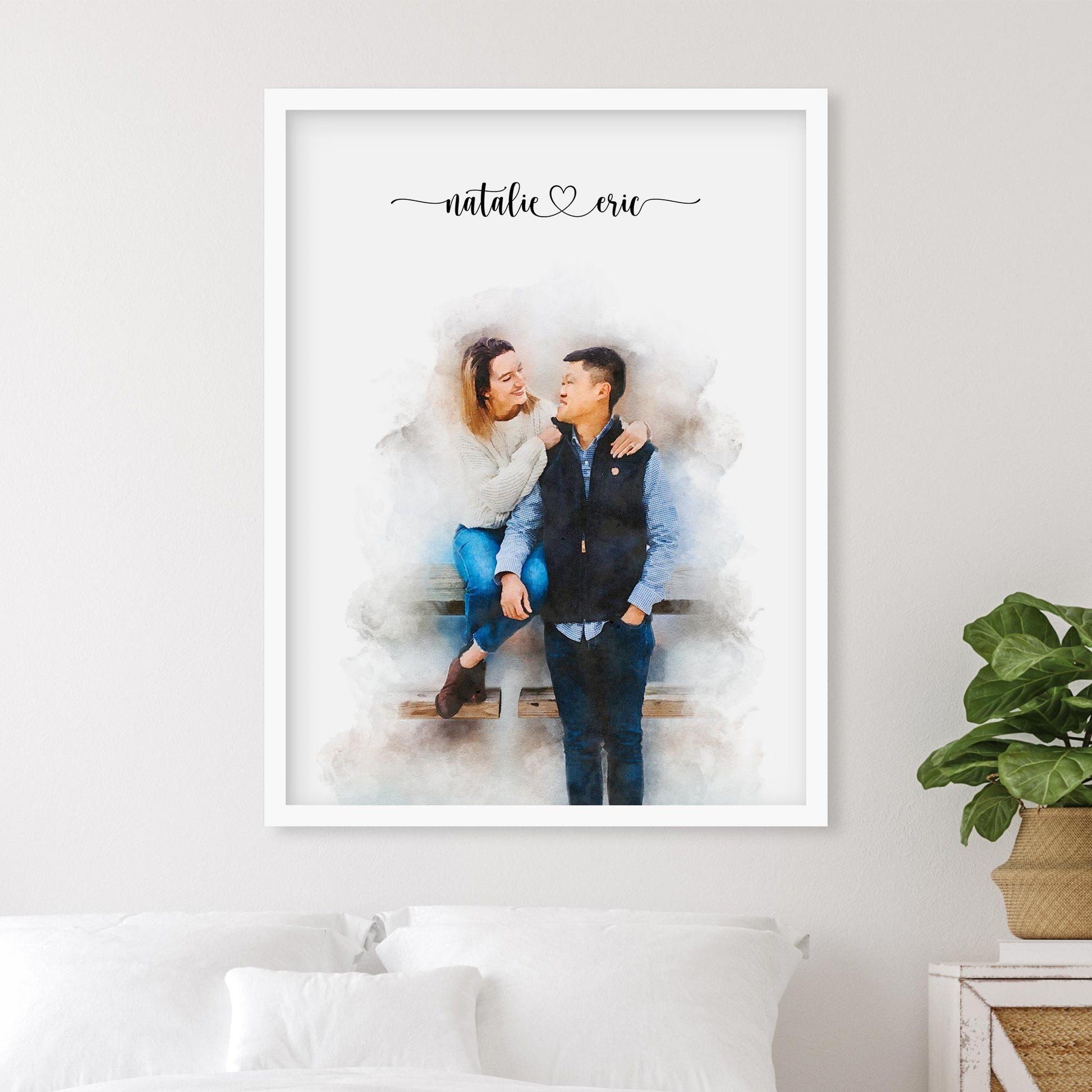 Express your love with a beautiful custom portrait digitally created from your photo! Create an eye-catching artwork of you and your partner, printed on thick, durable, gallery-grade paper. The matte frame is made from wood from renewable forests and ships with ready-to-hang hardware.