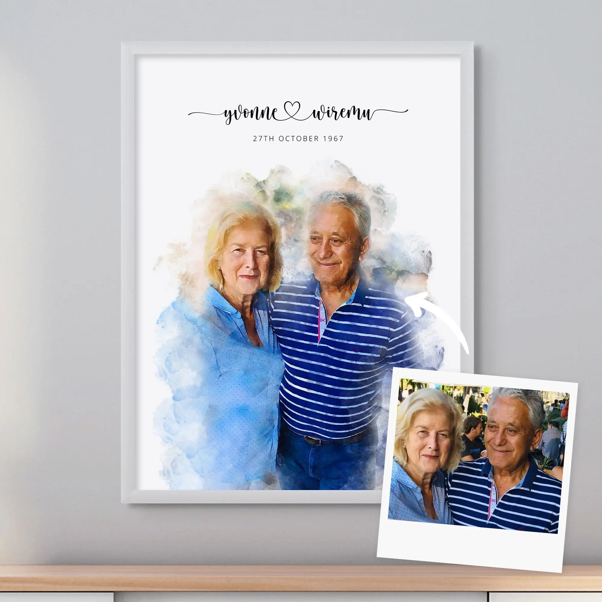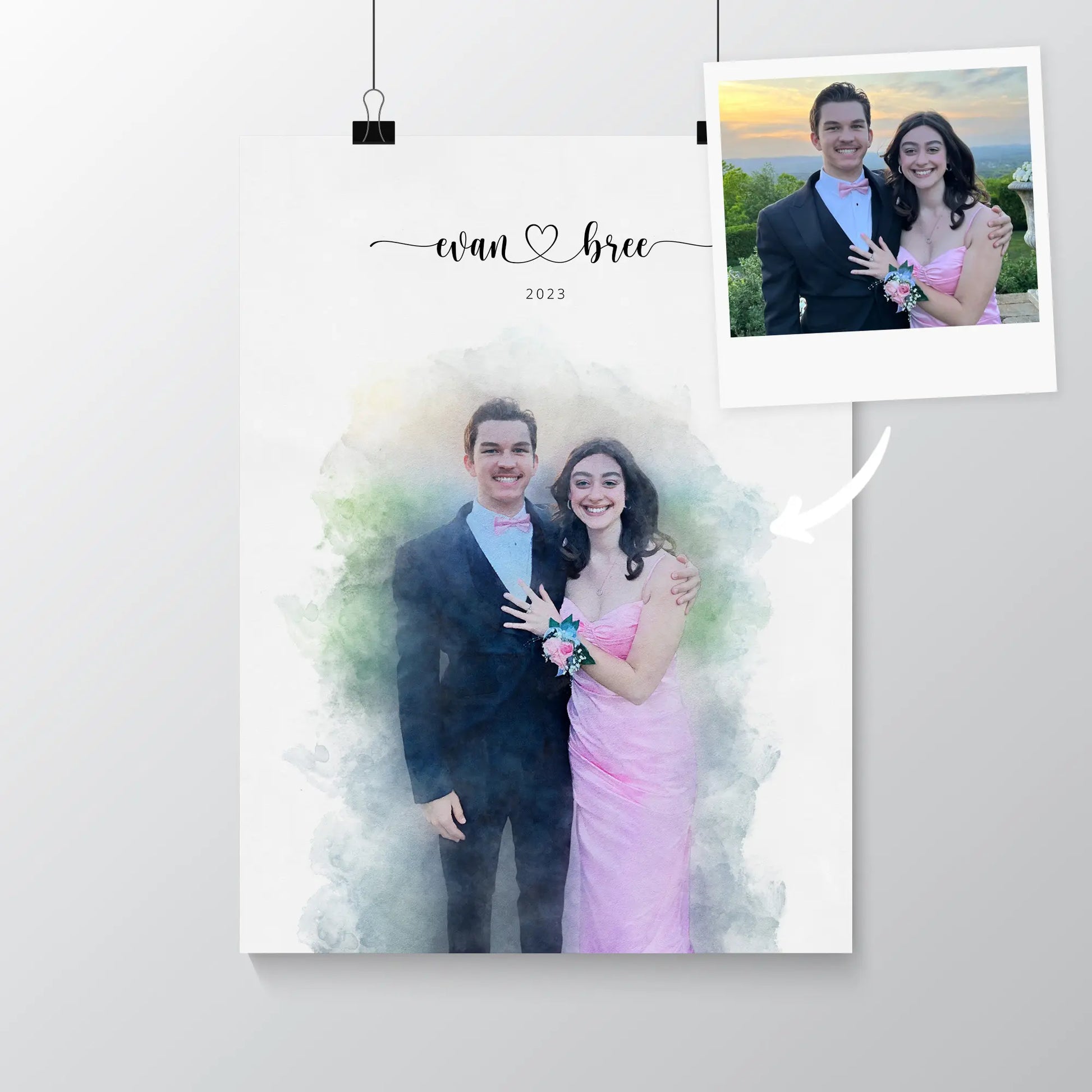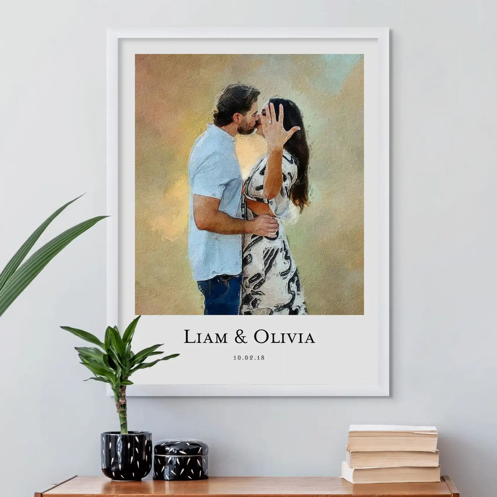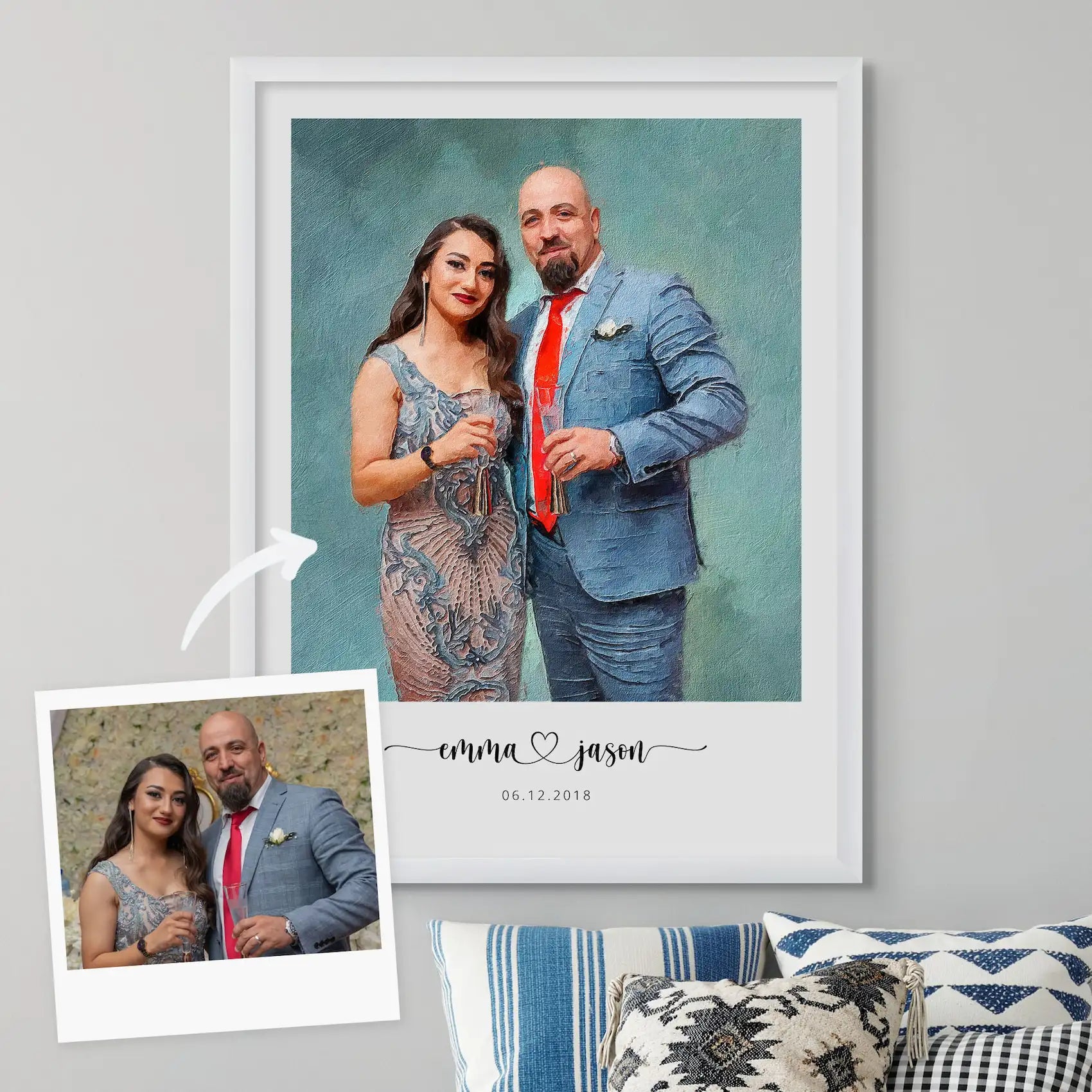 Express your love with a beautiful custom portrait digitally created from your photo! Create an eye-catching artwork of you and your partner, printed on thick, durable, gallery-grade paper. The matte frame is made from wood from renewable forests and ships with ready-to-hang hardware.