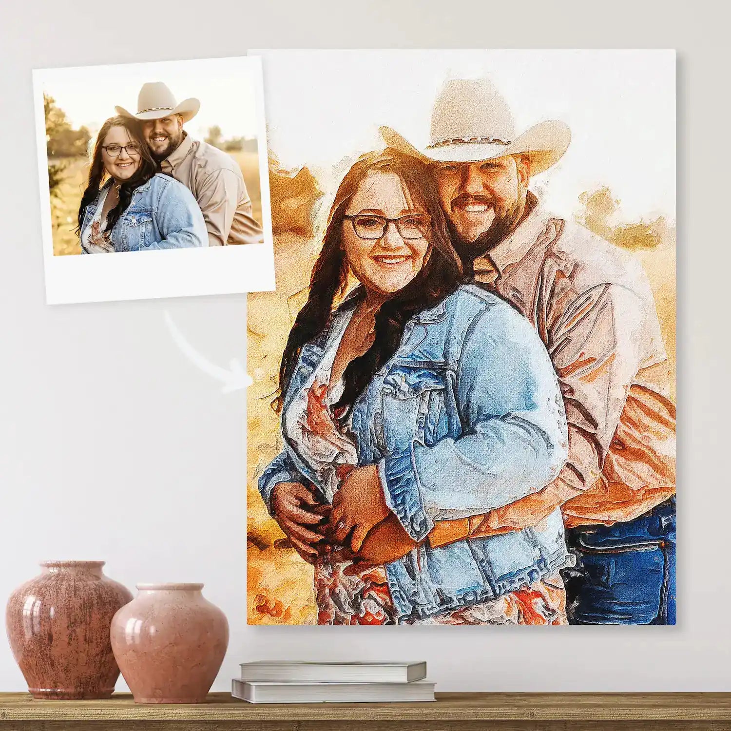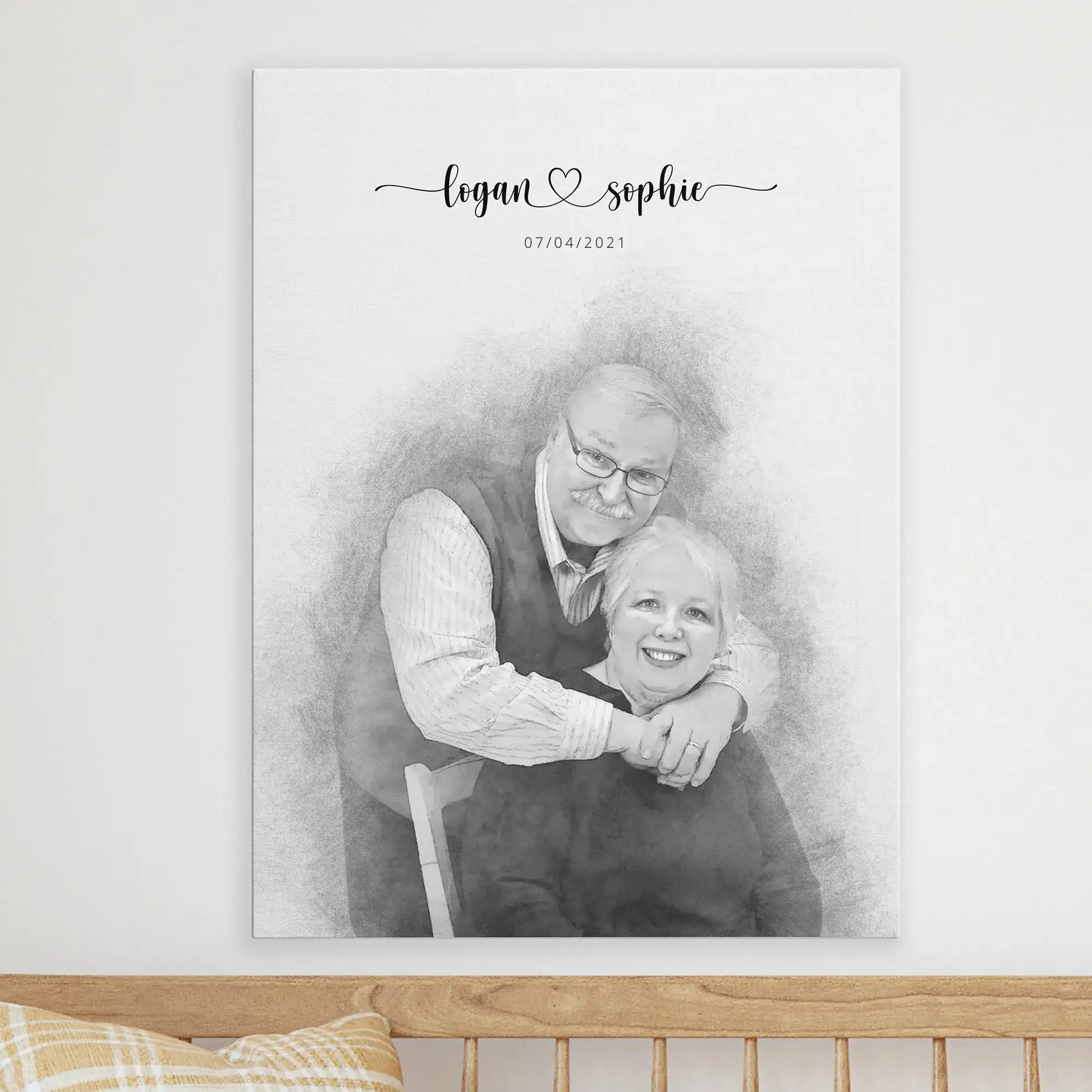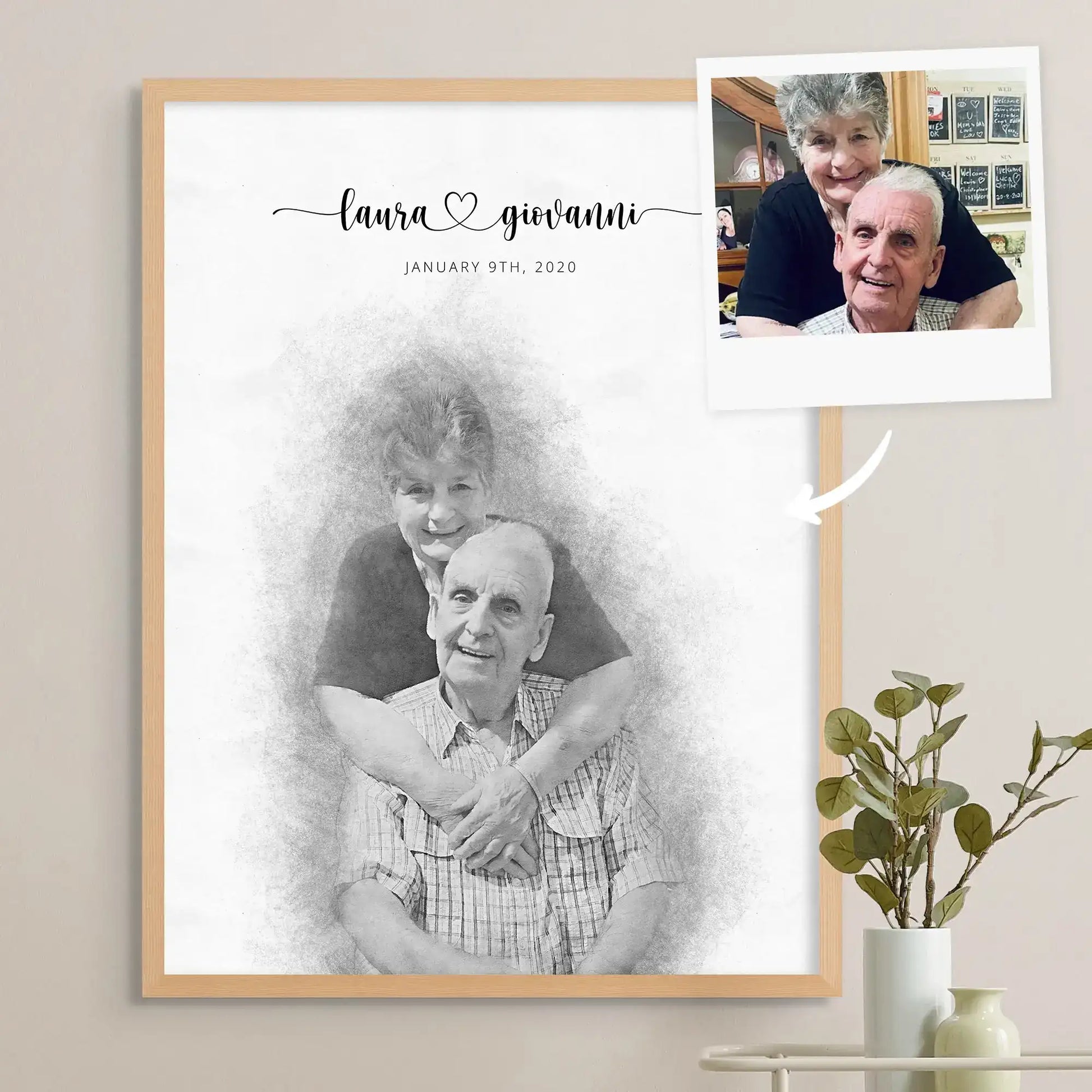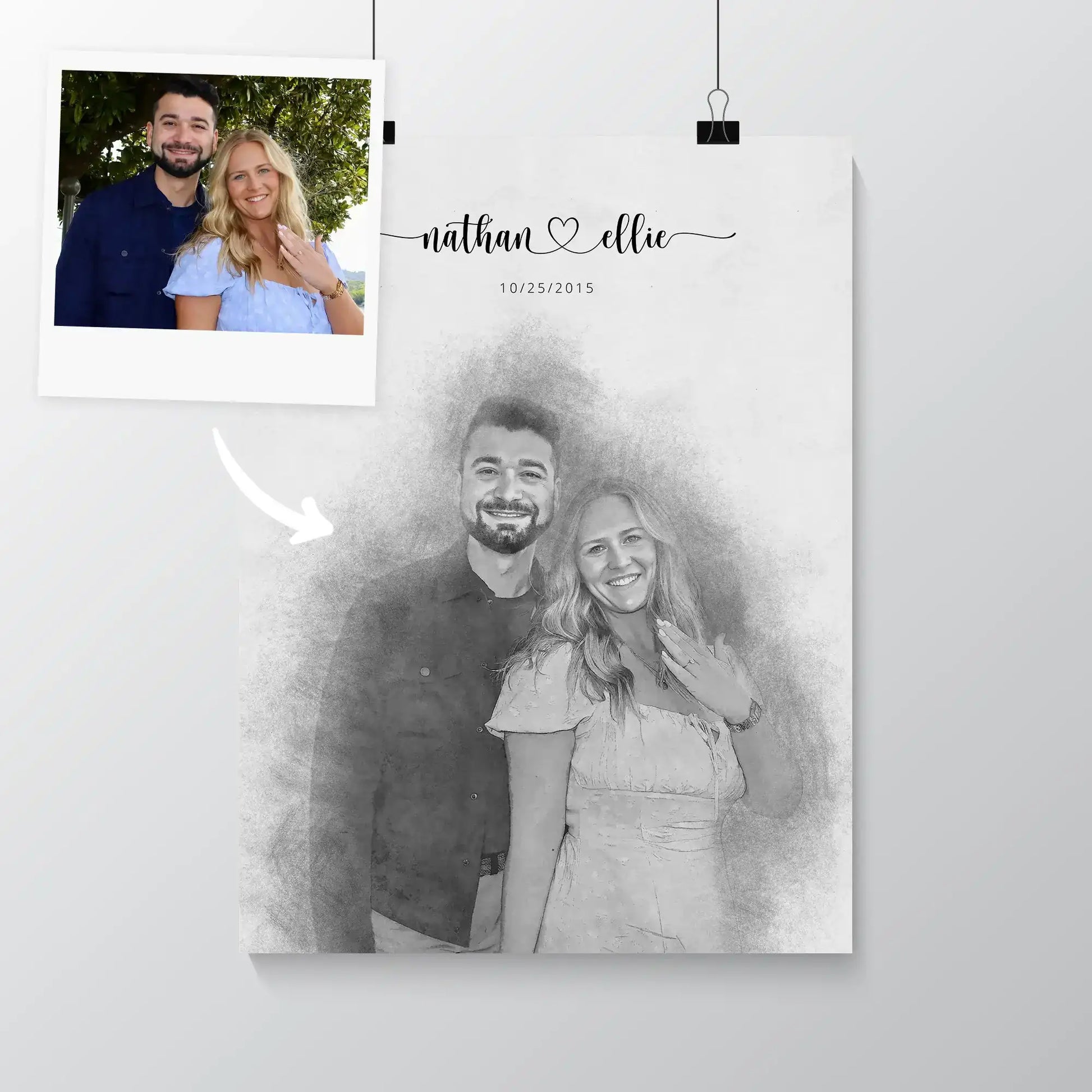 Your custom couple portrait will be a timeless record and celebration of your love to hang with pride in your home forever.
