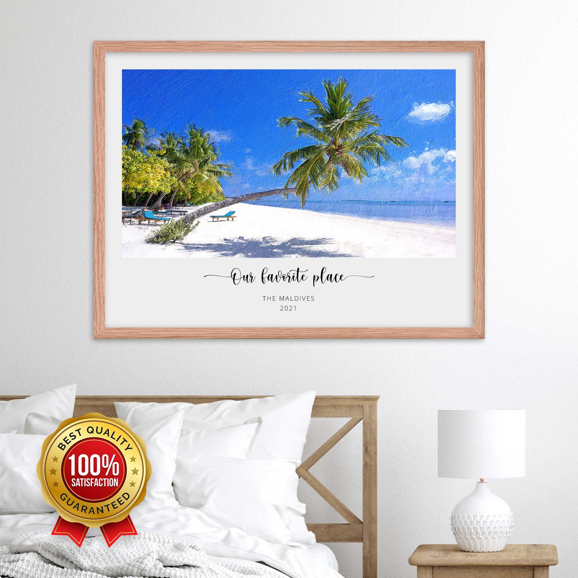 See it, love it, then pay! Within 3 days or less, we’ll send you an artwork proof to review. Request as many edits as you need and only pay once you’re 100% happy. When you approve your artwork, we’ll carefully print and frame it, then send it straight to your door (or to someone special, if it’s a gift).