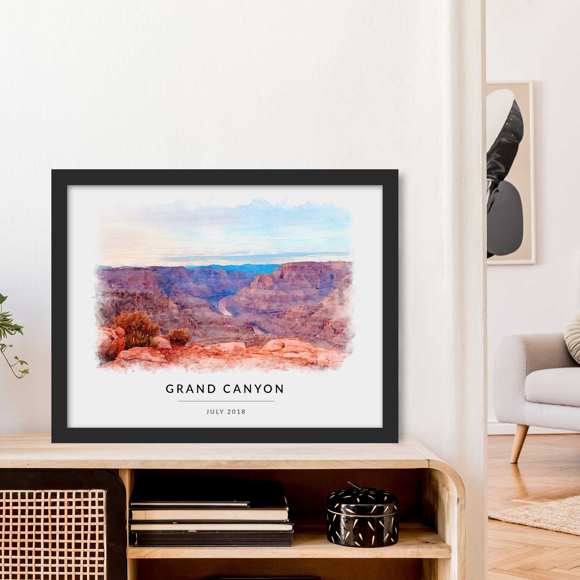 All custom artworks are printed on thick, durable, gallery-grade paper. The matte frame is made from wood from renewable forests and ships with ready-to-hang hardware.