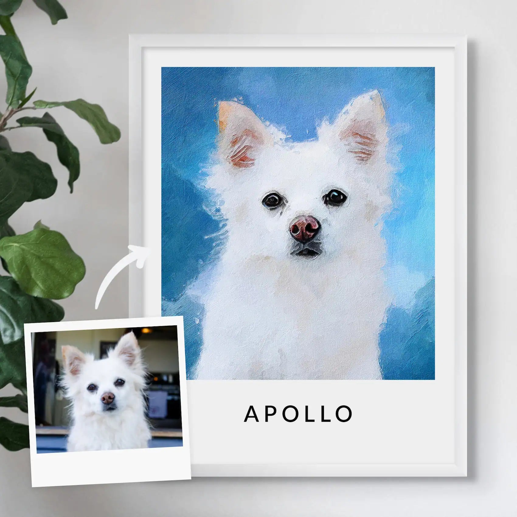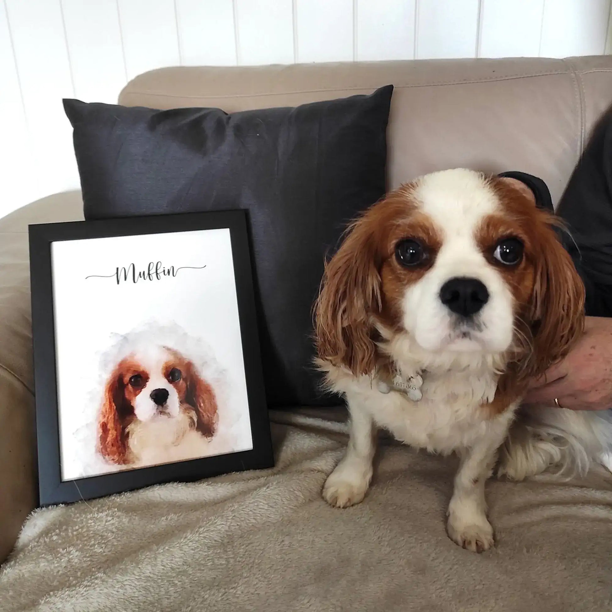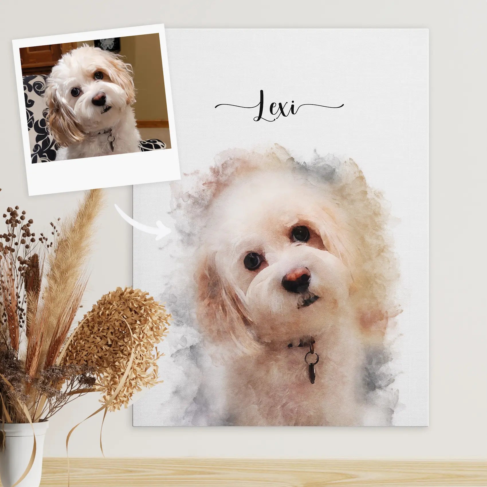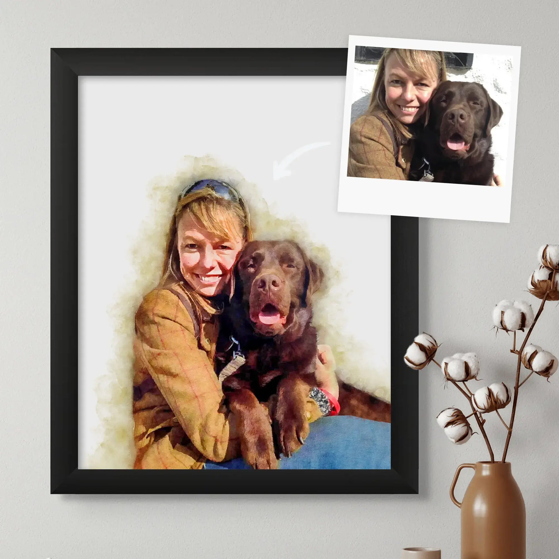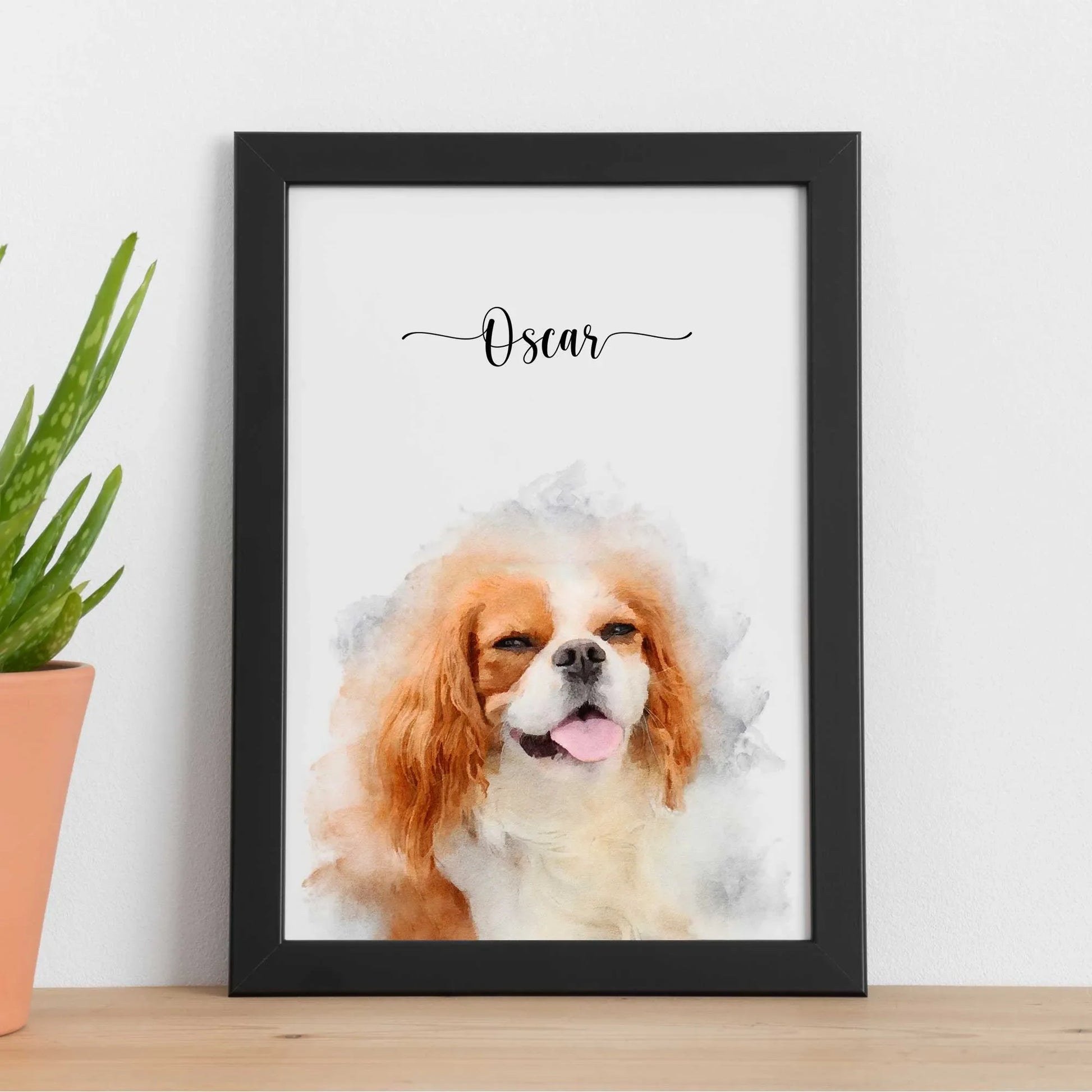 Celebrate your pet with a colorful watercolor, oil or sketch portrait digitally created from your photo! Create an eye-catching custom portrait of your pet, printed on thick, durable, gallery-grade paper. The matte frame is made from wood from renewable forests and ships with ready-to-hang hardware.