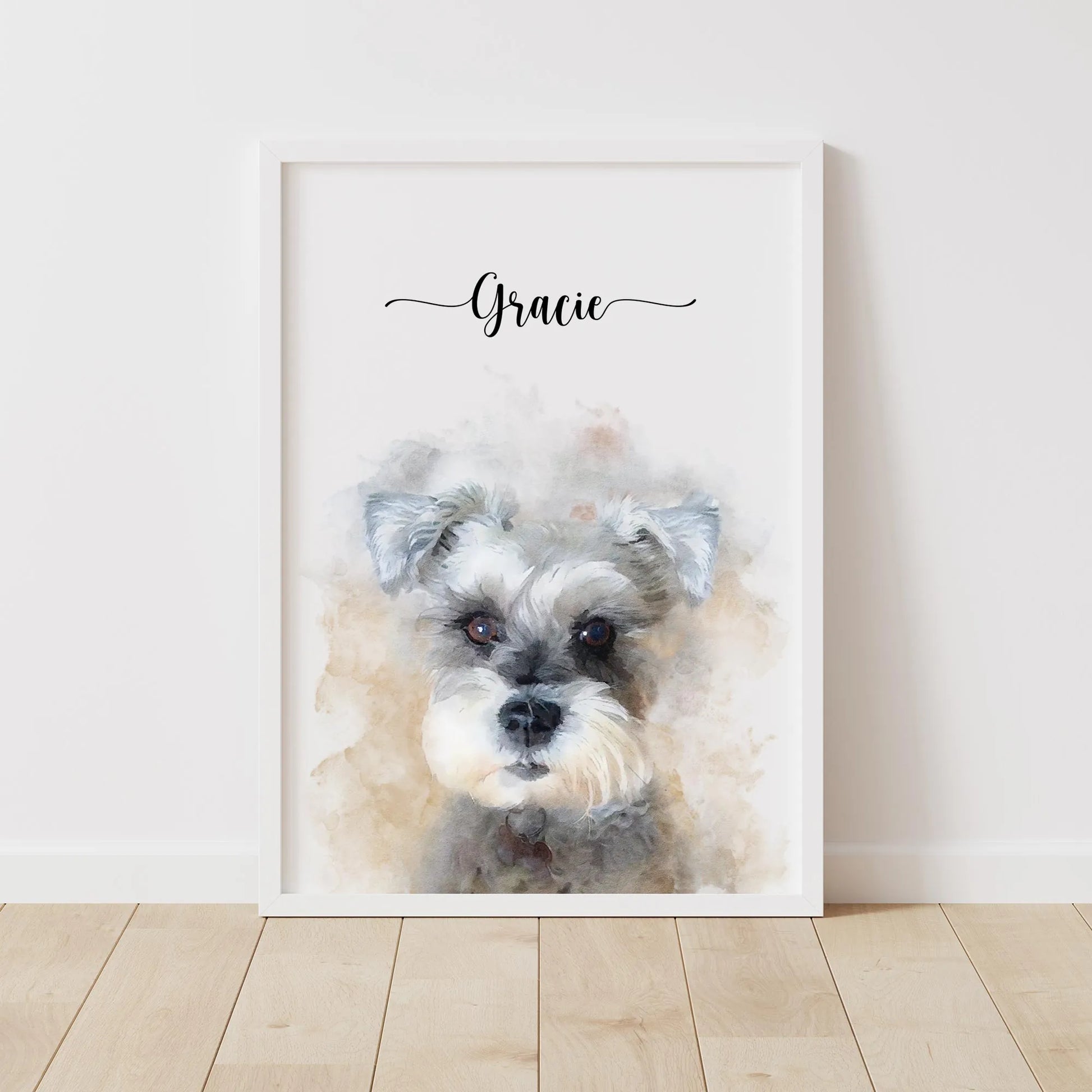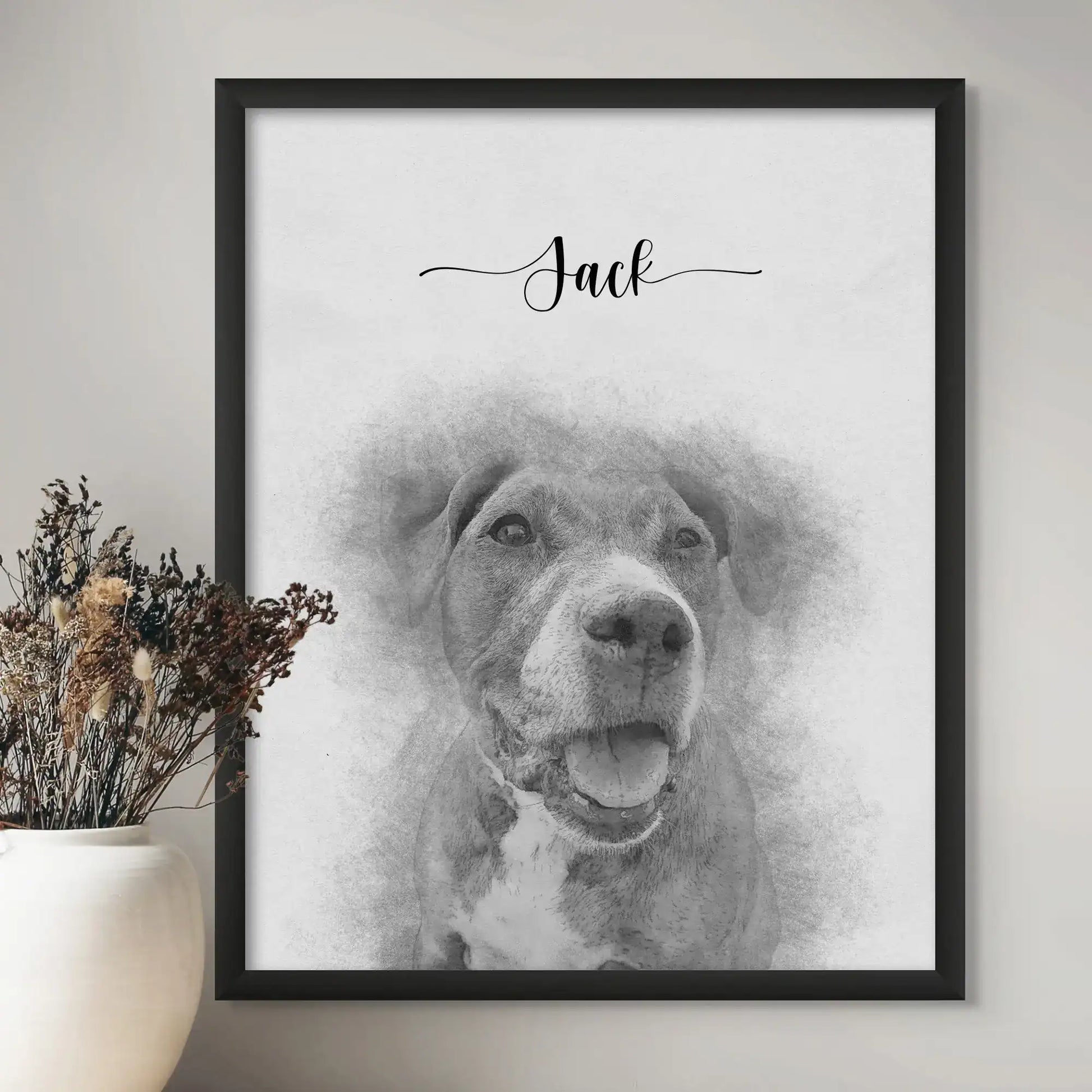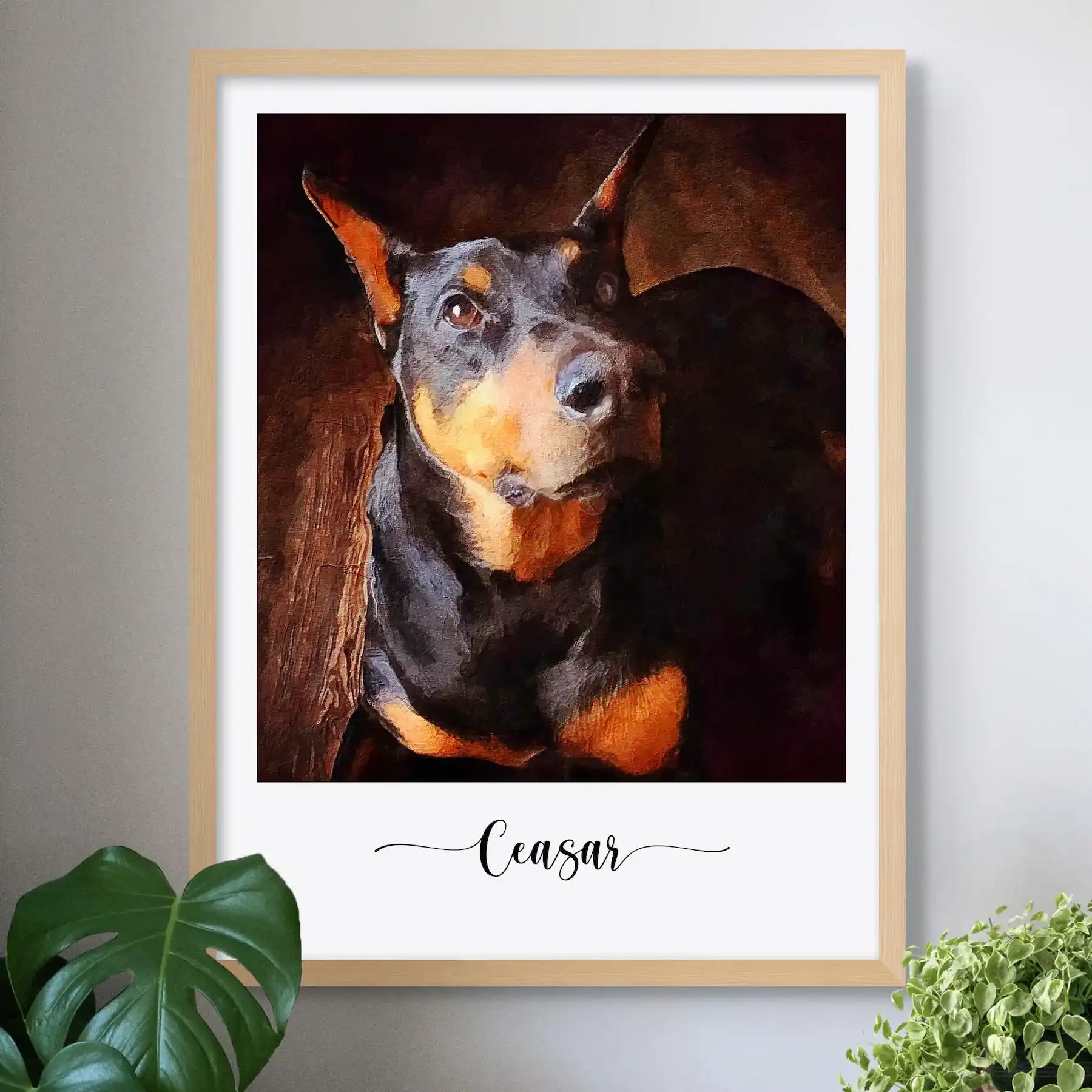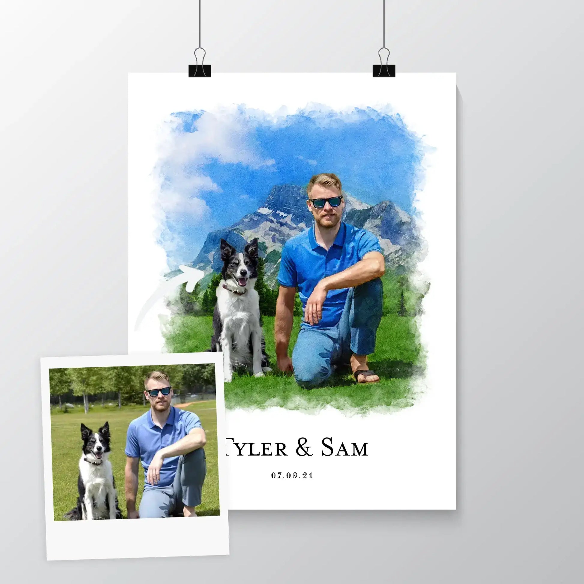 Celebrate your pet with a colorful watercolor, oil or sketch portrait digitally created from your photo! Create an eye-catching custom portrait of your pet, printed on thick, durable, gallery-grade paper. The matte frame is made from wood from renewable forests and ships with ready-to-hang hardware.
