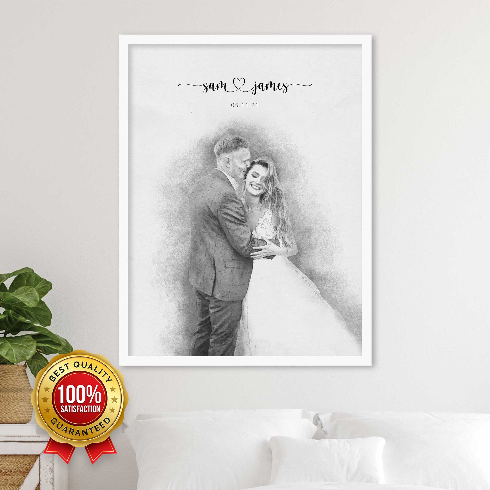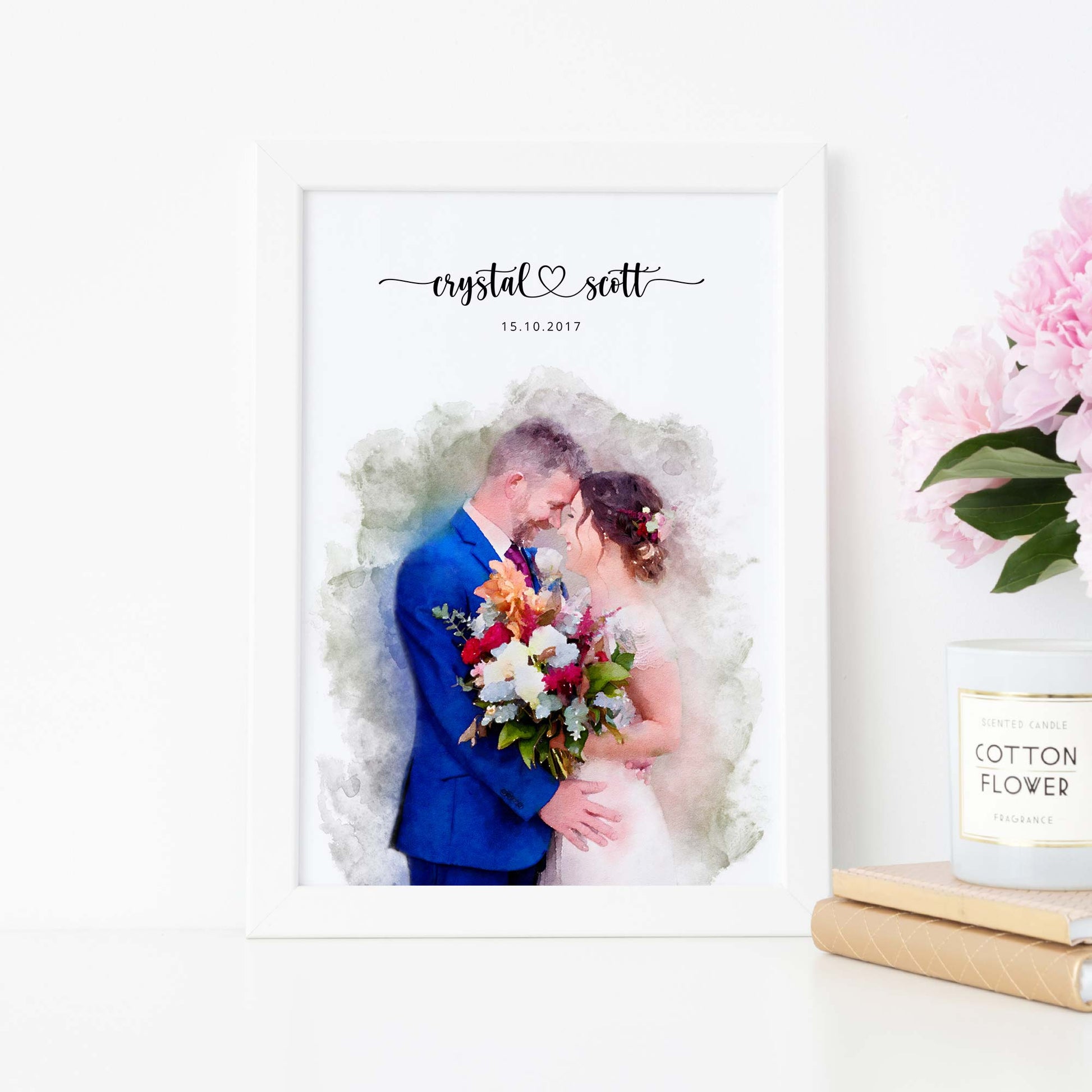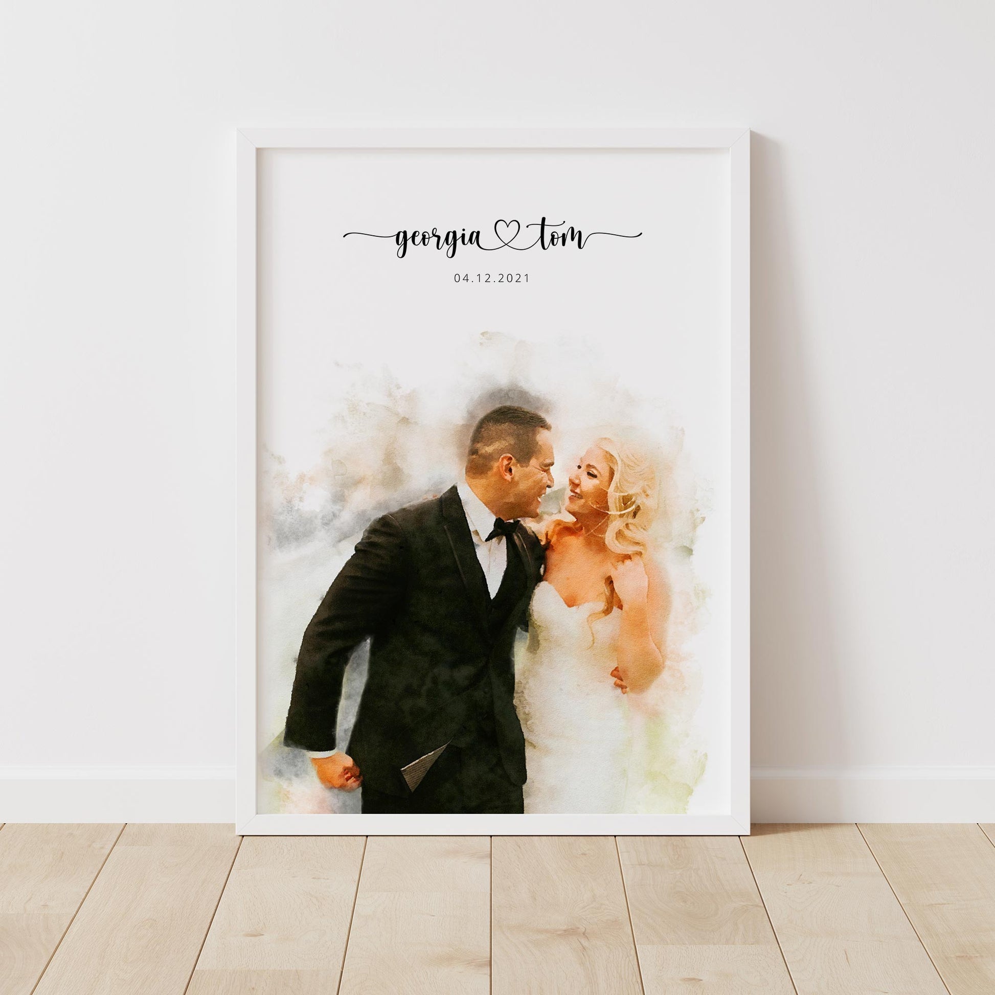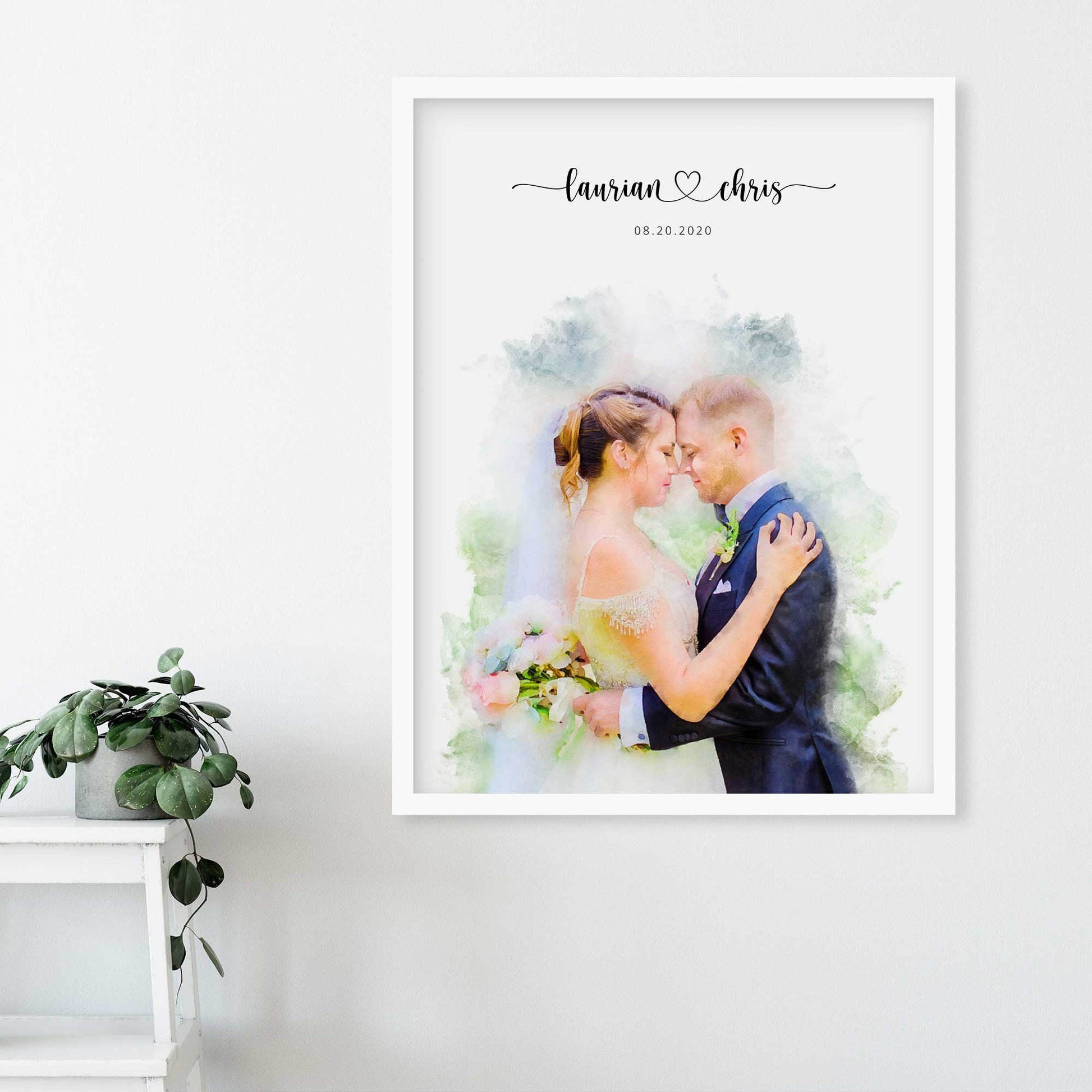 Your custom wedding portrait will be a beautiful record of your special day to hang with pride in your home forever.