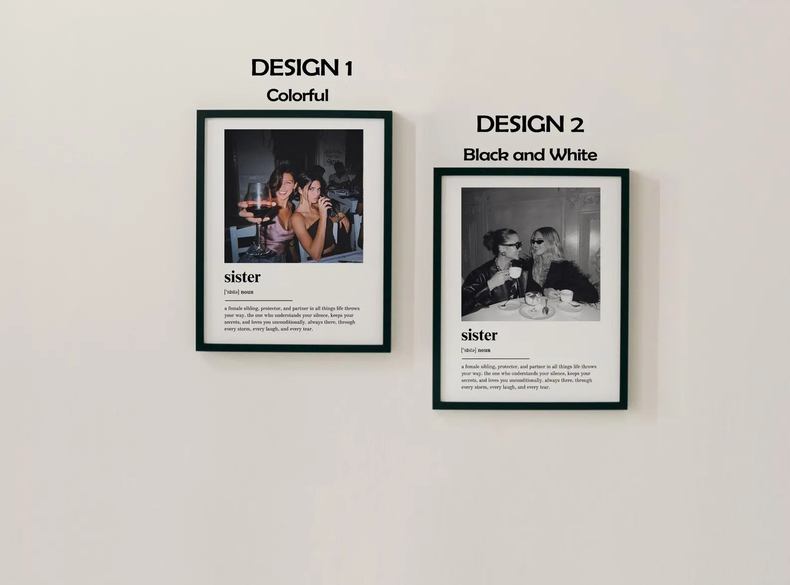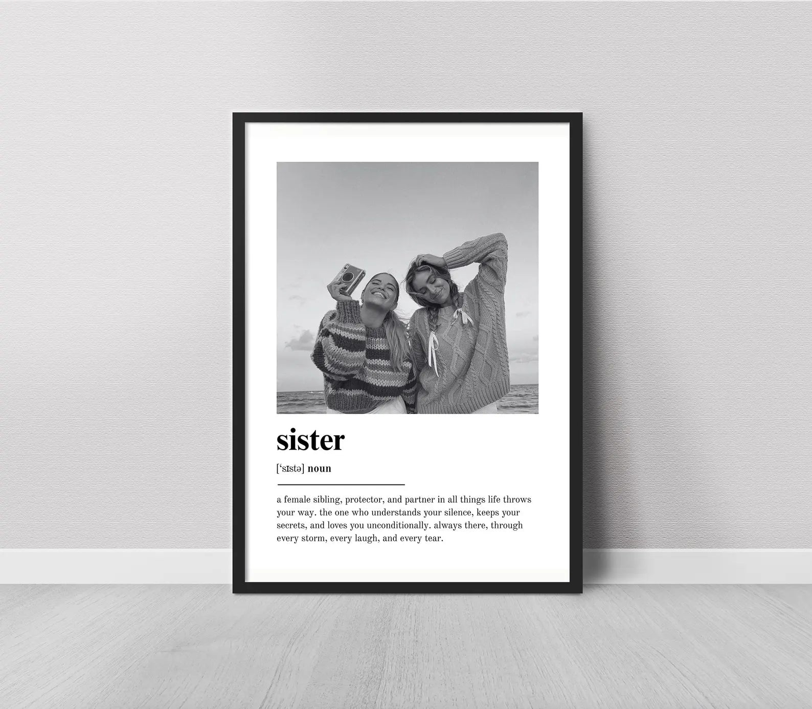 Celebrate the unbreakable bond between sisters with this beautifully customized dictionary-style photo print. Featuring your favorite photo together and a heartfelt, personalized definition, this minimalist design is the perfect gift to show your sister just how much she means to you.